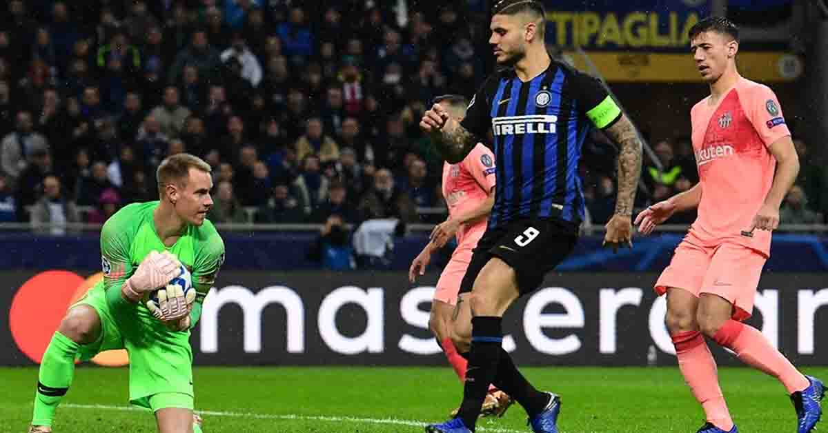 رفض قائد انتر وهدافه الأرجنتيني ماورو إيكاردي الاستسلام، فاستفاد من خطأ بالتشتيت لدفاع برشلونة وسجل من مسافة قريبة هدف التعادل (87).